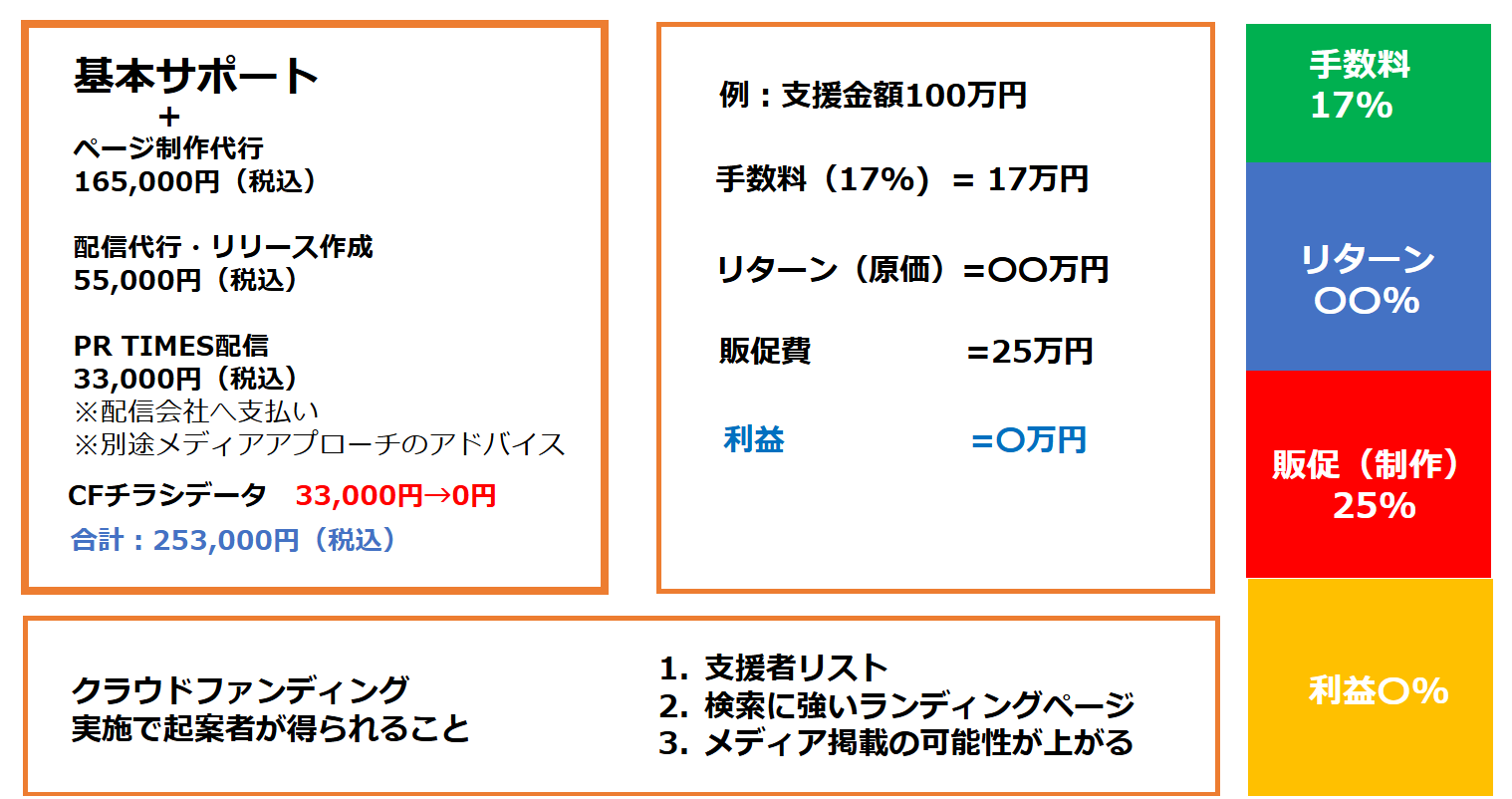 パートナーの報酬は、起案者がCAMPFIREに支払う手数料から成果報酬で受け取れるので、別途、私たちから成功報酬もいただいておりません。ご安心下さい。